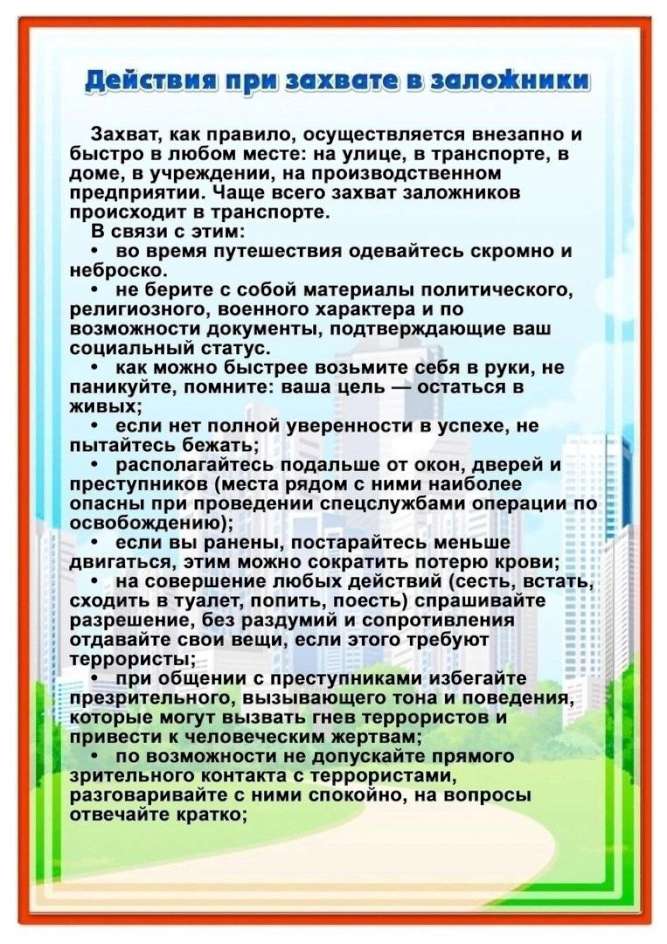 2. Памятка по антитеррору «Как вести себя в опасной ситуации»
