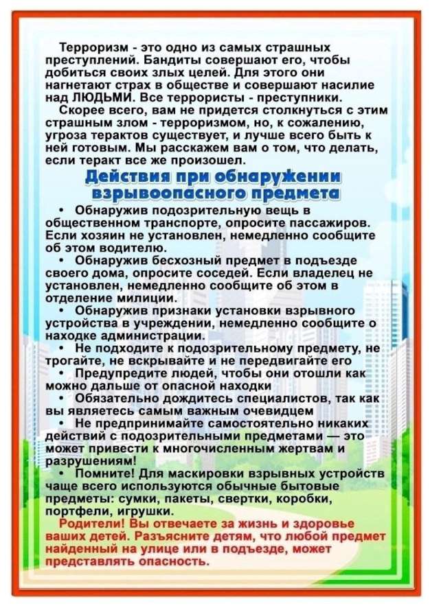 ПАМЯТКА ДЛЯ РОДИТЕЛЕЙ ПО АНТИТЕРРОРУ